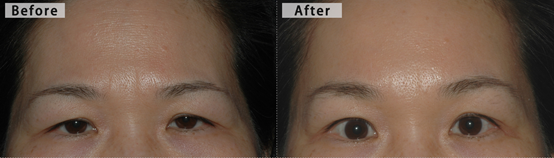 比起臉頰的鬆弛、脖子的紋路,前額的老化問題是大部分女性最為懼怕的。前額皮膚鬆弛會連帶著影響眉型和眼部的位置,肌膚鬆弛的壓迫容易導致眉型下垂,使得眉眼間距過窄,輕微的狀況可能只是雙眼無神,嚴重點恐怕會形成眉壓眼,除此之外眼型也會收到波及,受到壓迫的眼周肌膚、眼尾都會開始下垂,整體而言,形成了非常老態的模樣。此時,如果是以雙眼皮手術將過多的眼皮切掉,結果做出來的雙眼皮摺痕往往偏厚不自然,原因是因為從眉毛到睫毛的皮膚厚度是由厚到薄,割雙眼皮時只是把靠近睫毛比較薄的眼皮切掉,而留下遠離睫毛較厚的眼皮來做雙眼皮,因為皮膚厚度的關係,用厚的皮膚摺出來的雙眼皮摺痕自然會比較有厚重感,就好像摺棉被時,冬天的棉被疊出來的摺痕就是一定比薄棉被更有厚度。要避免此種不自然的厚重雙眼皮,建議是優先切除離眉毛近的眼皮,例如:眉下提眉,如果眉眼距離過近,需要提眉,則可以內視鏡前額拉皮將眉毛往上提拉,這樣雙眼皮部位就不會有過多的皮膚蓋在雙眼皮摺痕上。