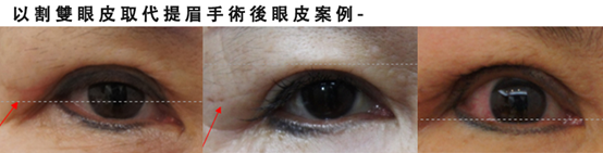 比起臉頰的鬆弛、脖子的紋路,前額的老化問題是大部分女性最為懼怕的。前額皮膚鬆弛會連帶著影響眉型和眼部的位置,肌膚鬆弛的壓迫容易導致眉型下垂,使得眉眼間距過窄,輕微的狀況可能只是雙眼無神,嚴重點恐怕會形成眉壓眼,除此之外眼型也會收到波及,受到壓迫的眼周肌膚、眼尾都會開始下垂,整體而言,形成了非常老態的模樣。此時,如果是以雙眼皮手術將過多的眼皮切掉,結果做出來的雙眼皮摺痕往往偏厚不自然,原因是因為從眉毛到睫毛的皮膚厚度是由厚到薄,割雙眼皮時只是把靠近睫毛比較薄的眼皮切掉,而留下遠離睫毛較厚的眼皮來做雙眼皮,因為皮膚厚度的關係,用厚的皮膚摺出來的雙眼皮摺痕自然會比較有厚重感,就好像摺棉被時,冬天的棉被疊出來的摺痕就是一定比薄棉被更有厚度。要避免此種不自然的厚重雙眼皮,建議是優先切除離眉毛近的眼皮,例如:眉下提眉,如果眉眼距離過近,需要提眉,則可以內視鏡前額拉皮將眉毛往上提拉,這樣雙眼皮部位就不會有過多的皮膚蓋在雙眼皮摺痕上。
